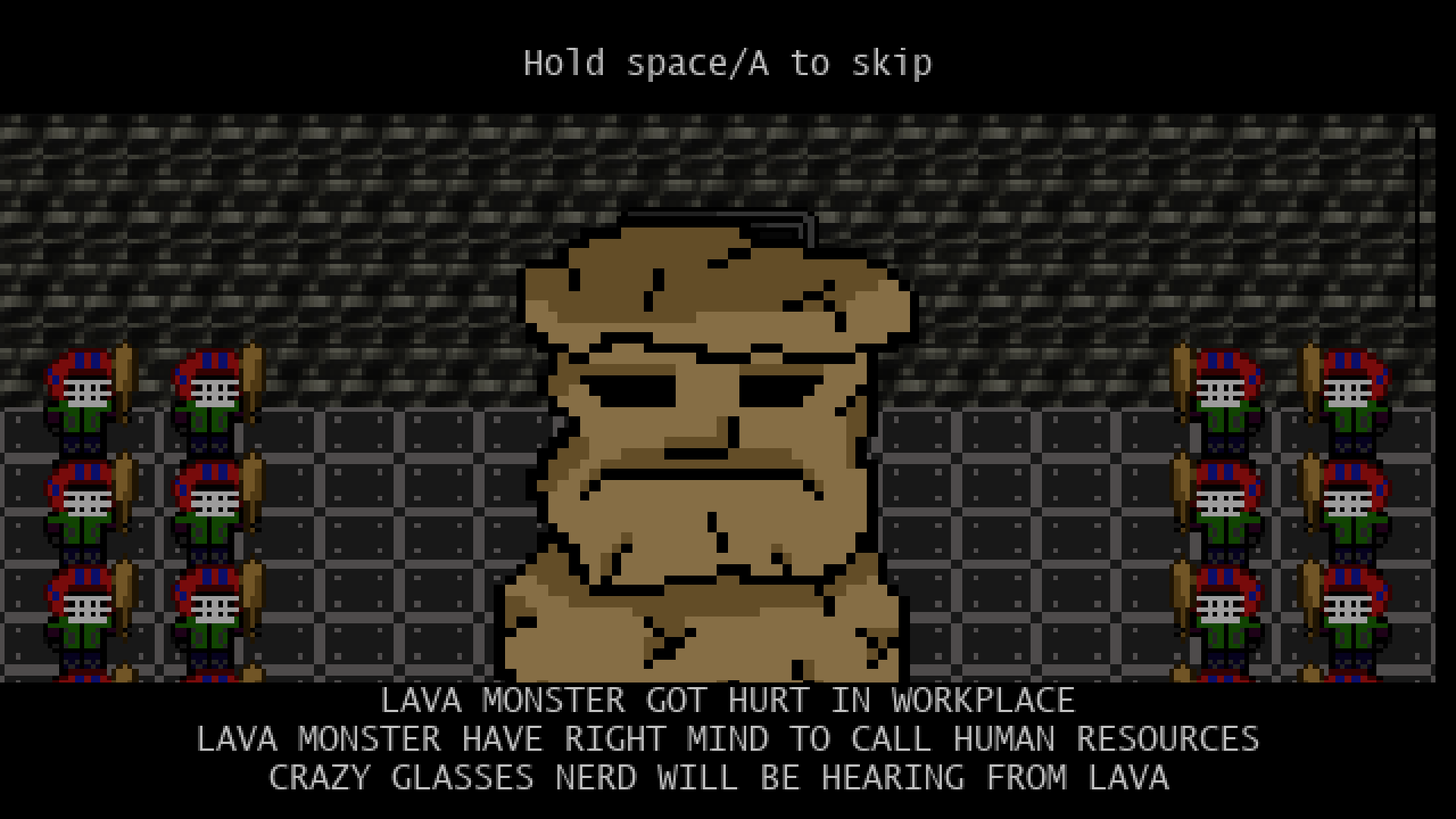 This project was created for an 11 year old who recounted this story to me under strict instructions to create a game that accurately and faithfully portrayed Meerkat Man's heroic struggles.
